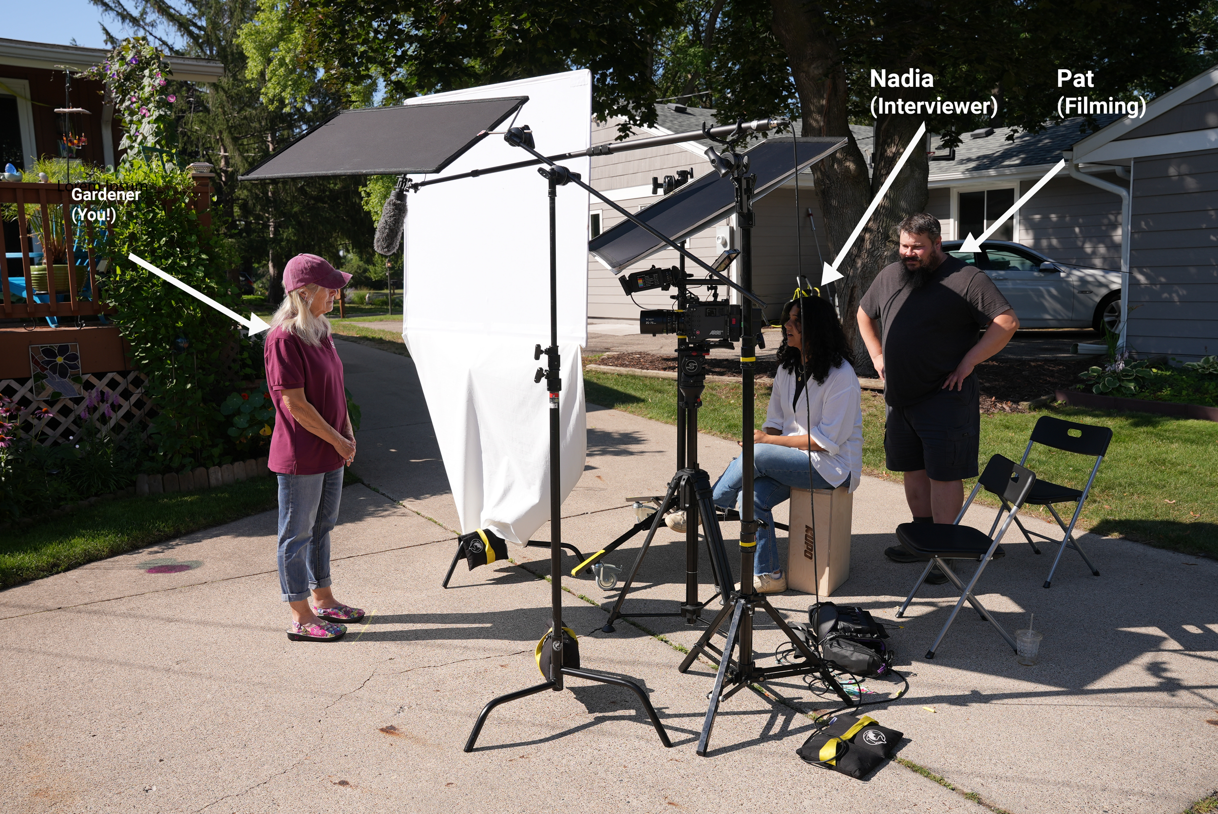 After the interview, we’ll take down part of the interview set-up, and start filming your garden! This is where we are gathering our B Roll shots, which will have no audio and will only be focusing on the visual component of your garden and how you interact with it!